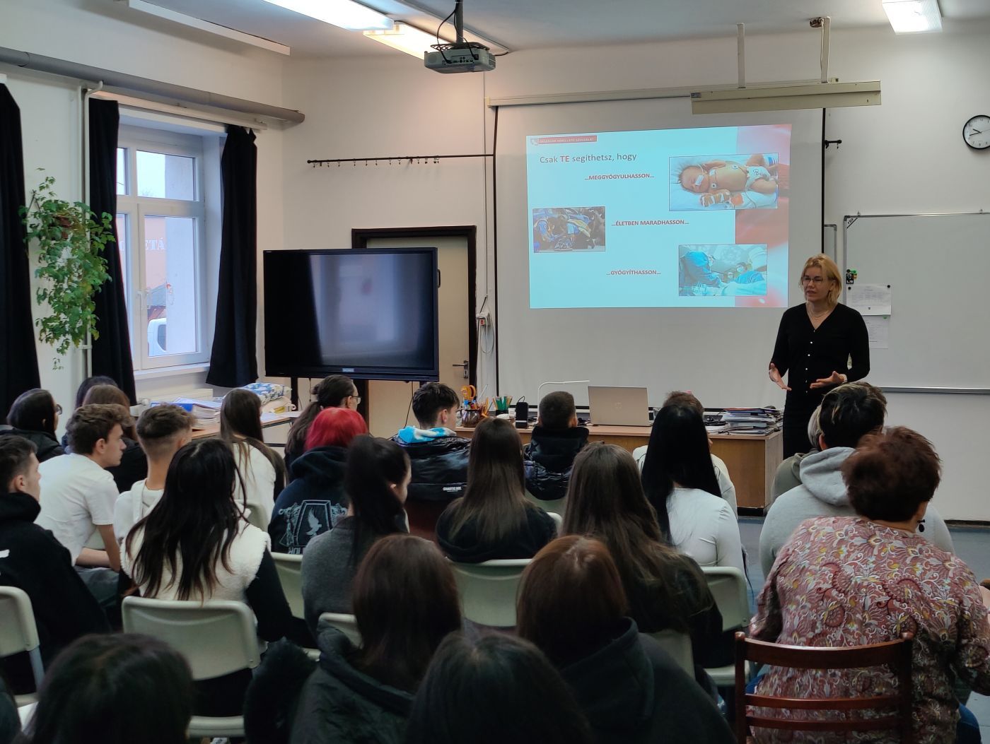 2025. december 2-án iskolánkban az Országos Vérellátó Szolgálat képviseletében Strasszer Valéria véradásszervező tartott előadást.